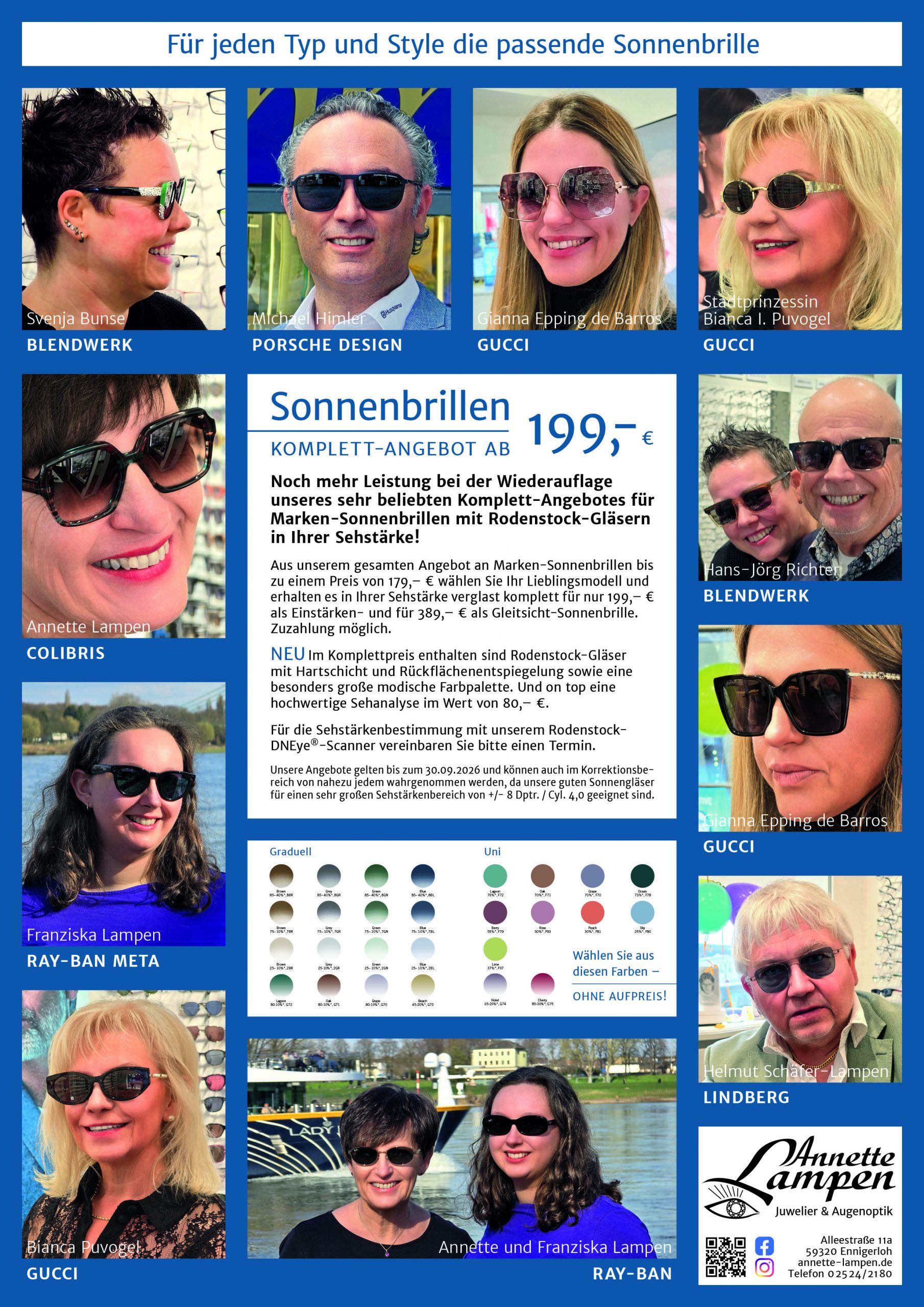 Sonnenbrillen Komplett-Angebot ab 199,- € bei Annette Lampen - Juwelier & Augenoptik